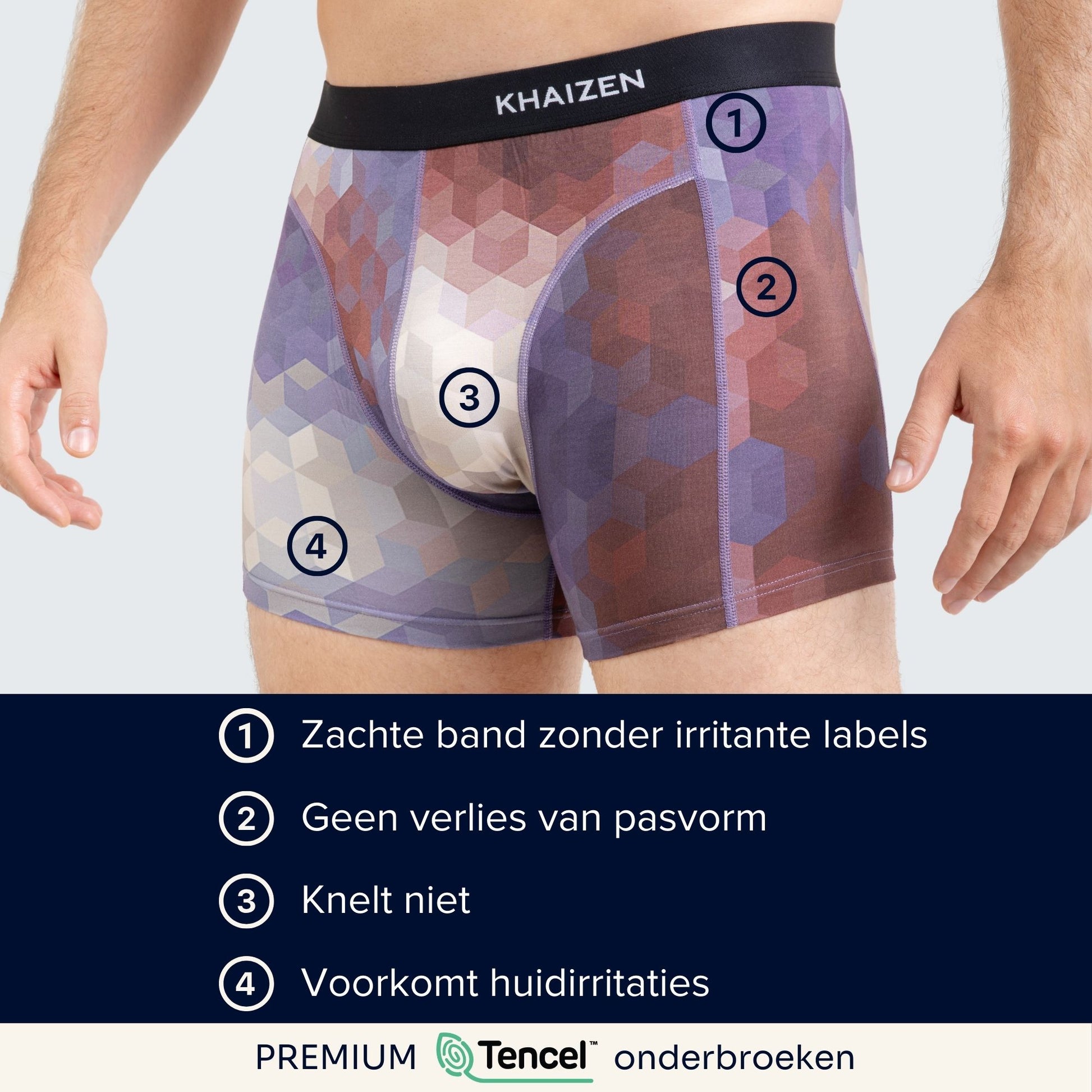 Prevent underwear problems such as fast wear & tear, losing the stretchy fit, and a sweaty feel. KHAIZEN boxershorts feel buttery soft and reduces bacteria growth, keeping you fresh all-day!
